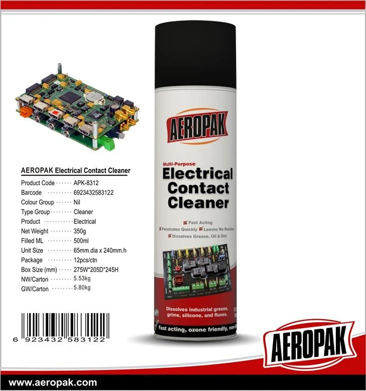 Aeropak Electrical Contact Cleaner spray is a fast drying, multi-purpose industrial quality cleaner. It effectively dissolves industrial grime, grease, lubrication fluids, silicone, tars, adhesives and fluxes.