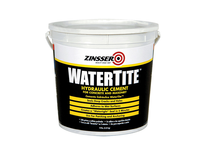 Permanently stop the active flow of water with Rust-Oleum® Zinsser® WATERTITE® Hydraulic Cement for Concrete & Masonry. This powerful formula adheres to wet surfaces and expands as it dries to fill deep cracks and holes, creating a watertight seal in just five minutes.